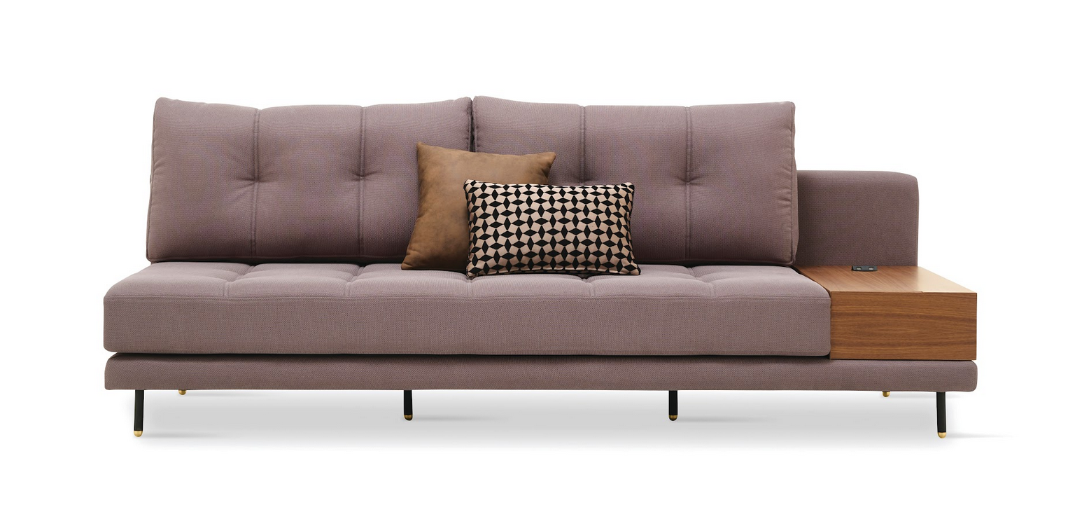 ARTE CORNER SOFA SET enriches its design with creative wood usage and a technological accessory compartment, completing its functionality with visual richness.