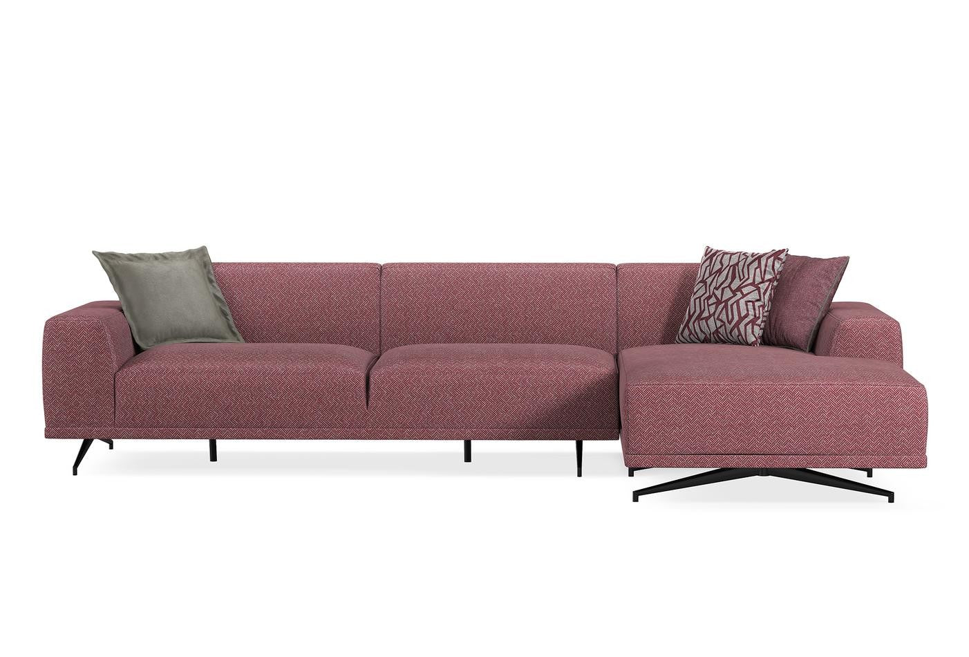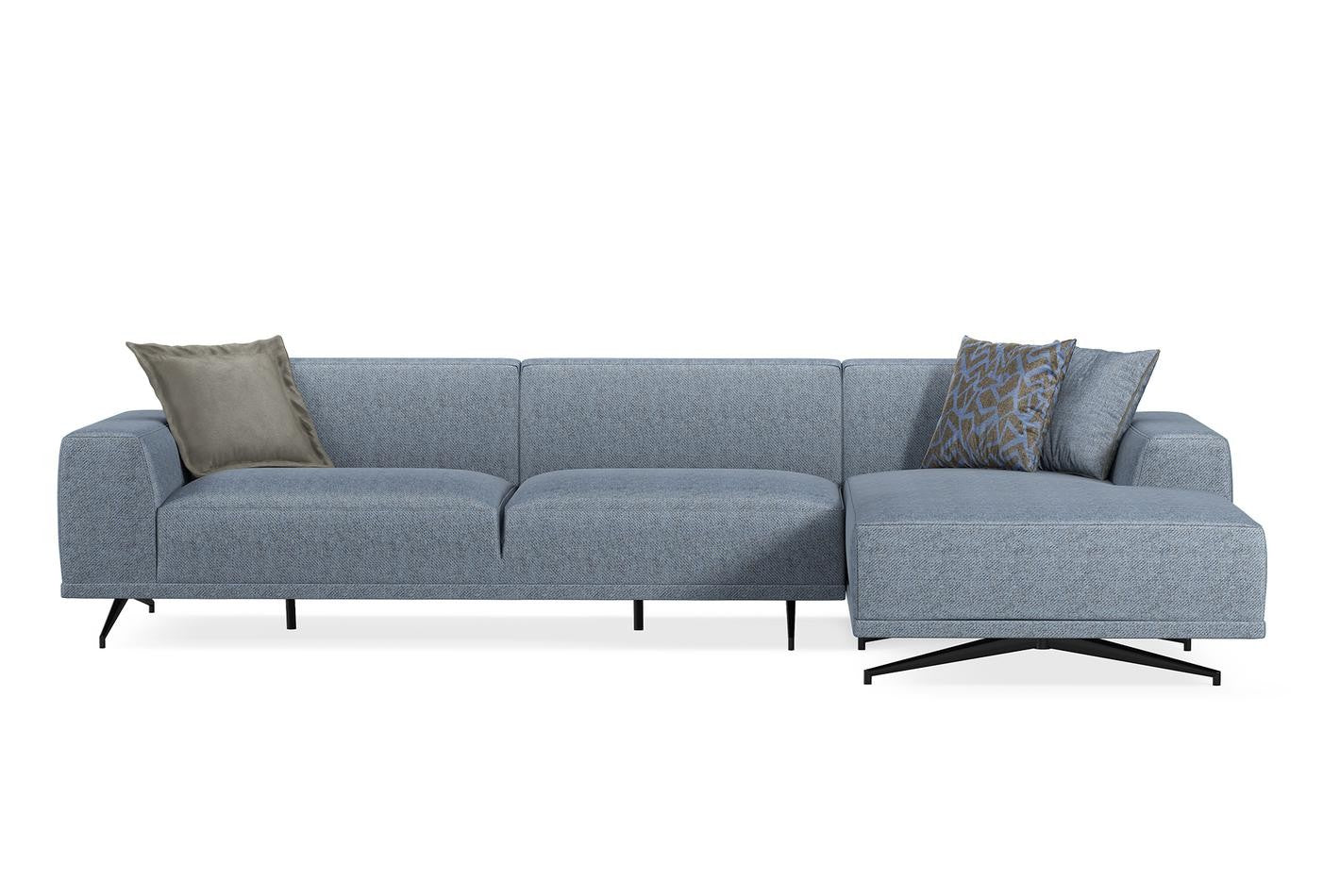 Giorno L Shape Sectional RAF which combines the thick and soft seat cushions with the modern style, brings high comfort to living spaces with the multi-layer foam technology applied in its design. This set makes a bold statement in the living room decor by representing the contemporary urban design with its linen-textured fabric with different color options and special metal leg form. Reflecting a sustainable design approach with its wood construction with metal legs, Giorno L Shape Sectional RAF creates functional and aesthetic spaces featuring stylish armchairs with wooden legs.