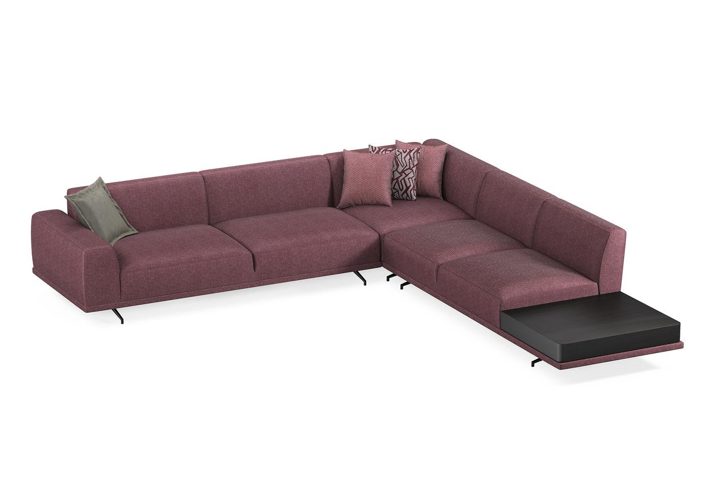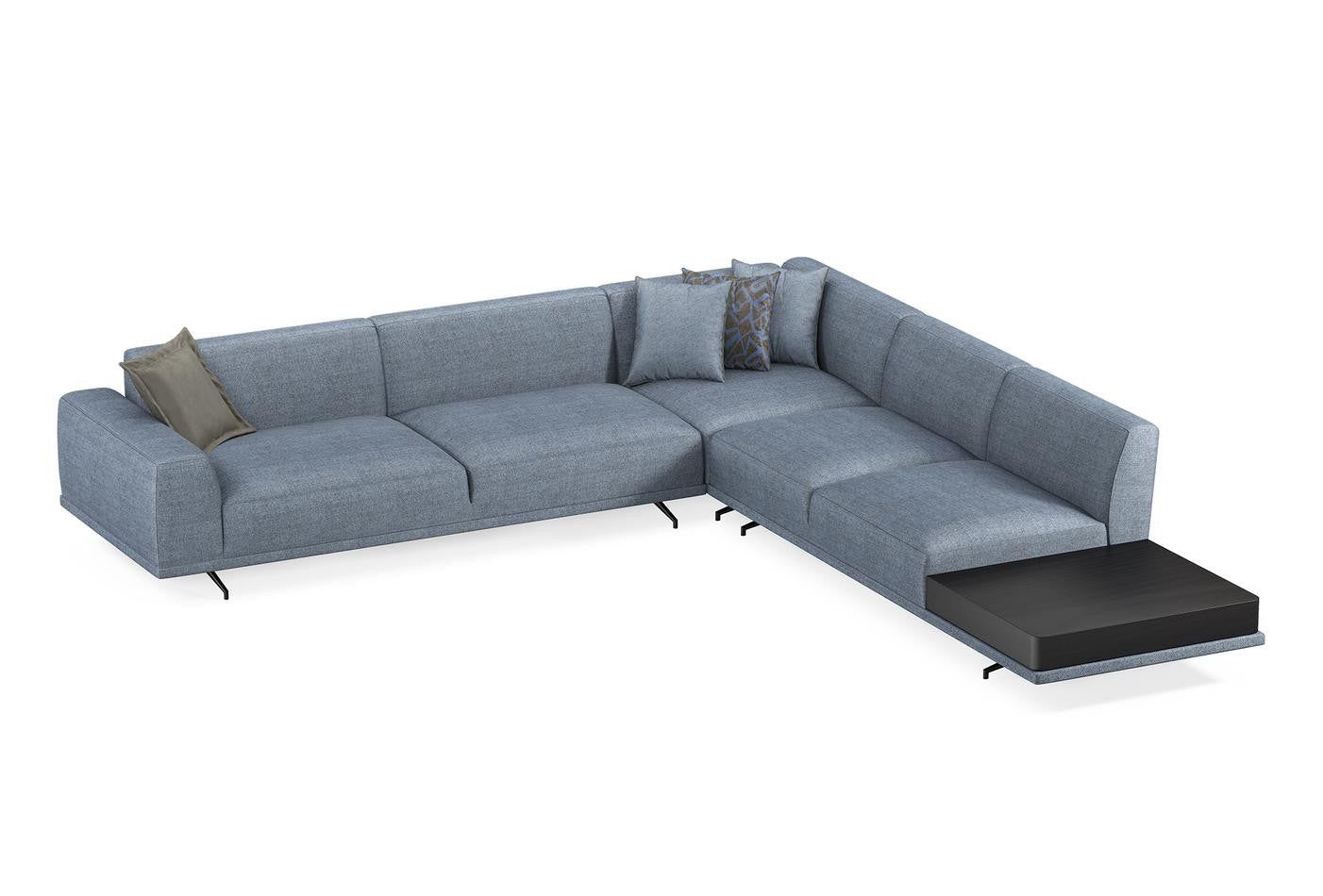 GIORNO CORNER SOFA SET WITH COFFEE TABLE which combines the thick and soft seat cushions with the modern style, brings high comfort to living spaces with the multi-layer foam technology applied in its design. This set makes a bold statement in the living room decor by representing the contemporary urban design with its linen-textured fabric with different color options and special metal leg form. Reflecting a sustainable design approach with its wood construction with metal legs, GIORNO CORNER SOFA SET WITH COFFEE TABLE creates functional and aesthetic spaces featuring stylish armchairs with wooden legs.