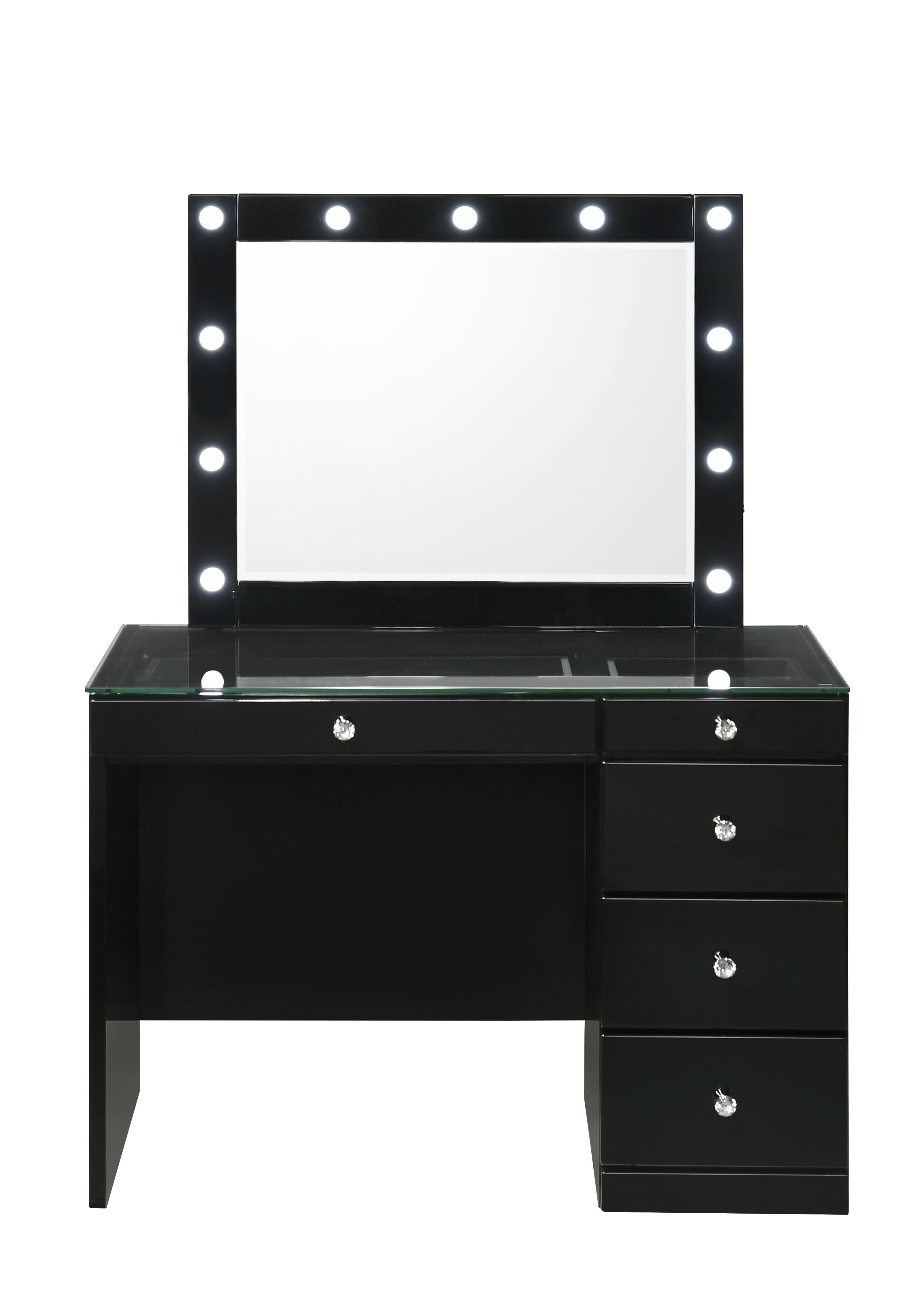 Morgan - Vanity Desk With Glass Top, LED Mirror & Stool - Black