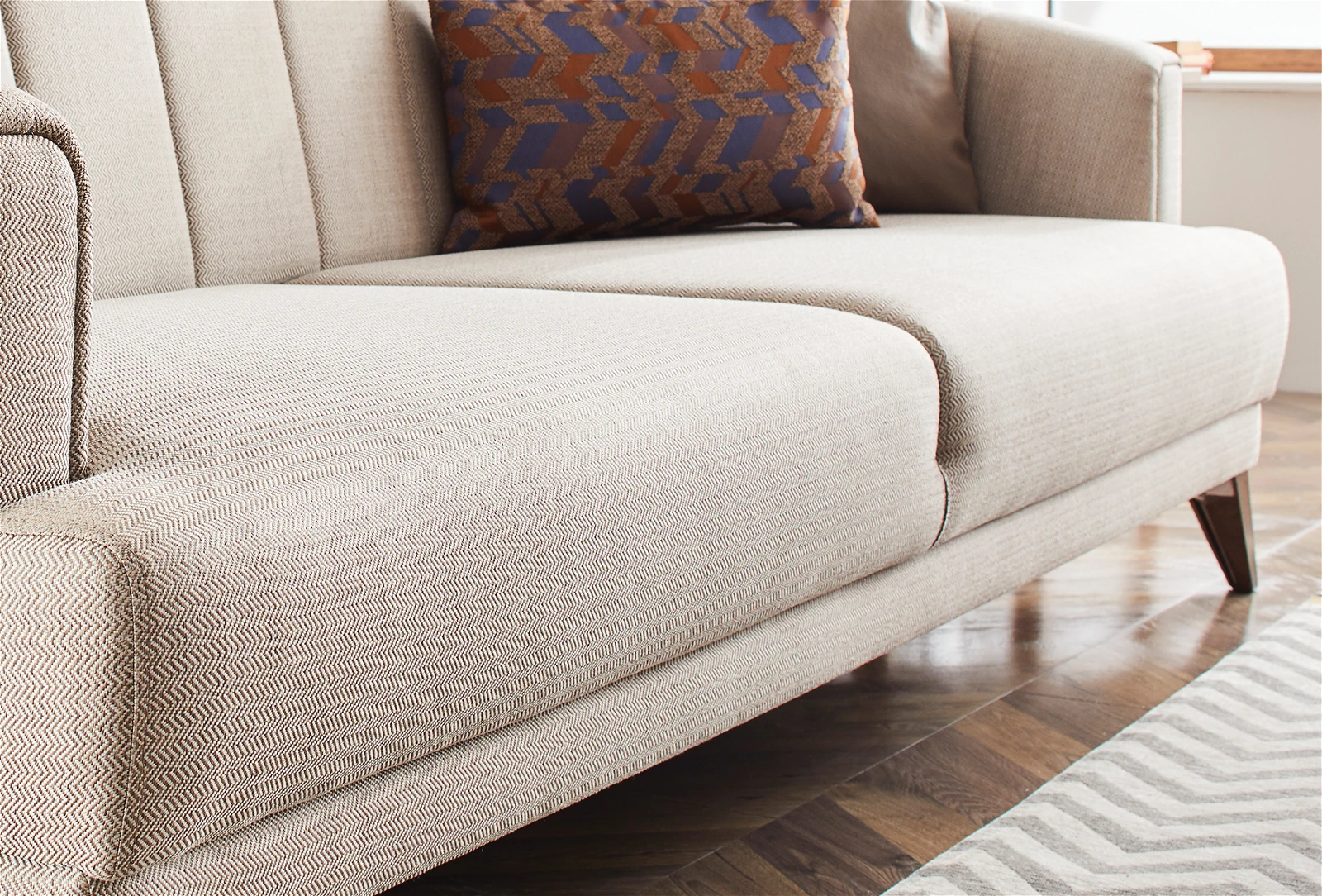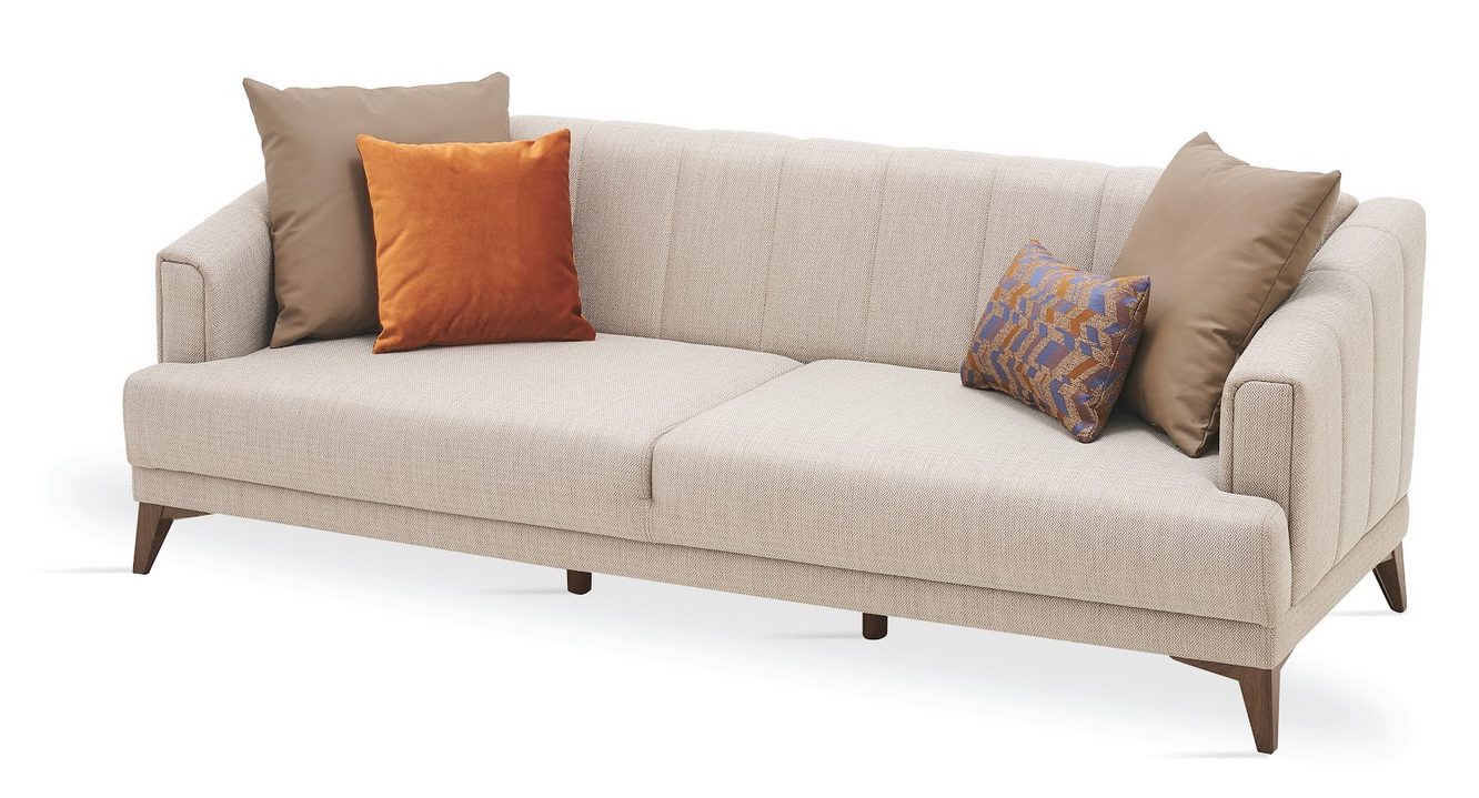 The SONA 3-SEATER SOFA, carrying the sleek and refined lines of modern style, stands out with its high comfort and eye-catching design. The fabric and cushion applications offer rich visual alternatives to the design, reflecting a meticulous aesthetic sense with special stitching applications on the backrest and arms.The multi-layered sponge application that prioritizes comfort brings together the refined style of the SONA 3-SEATER SOFA with unparalleled comfort.