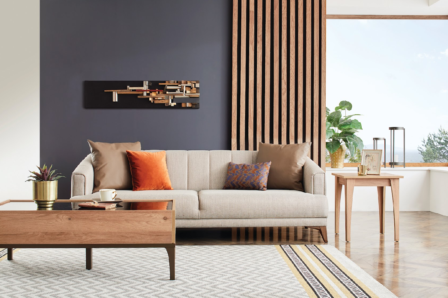 - Series Features: Carrying the plain and refined lines of a contemporary style, SONA LIVING ROOM stands out with its high comfortable, eye-catching design. Fabric and throw pillow applications that offer rich visual alternatives to the design and special stitches used on the back cushion and armrests reflect an elaborate sense of aesthetics. The multi-layer sponge application that puts comfort to the forefront combines the refined style of Sona Living Room with a unique comfort.